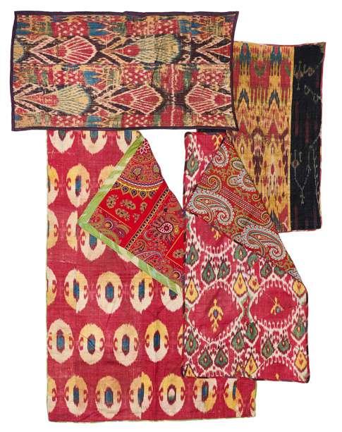 AN IKAT PANEL, SAMARKAND, THIRD QUARTER 19TH CENTURY AND THREE IKAT PANELS, UZBEKISTAN, 19TH CENTURY