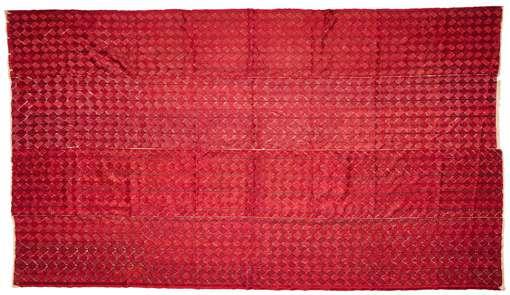 the red field with a column of four hooked, stepped guls, approximately 247 x 117cm