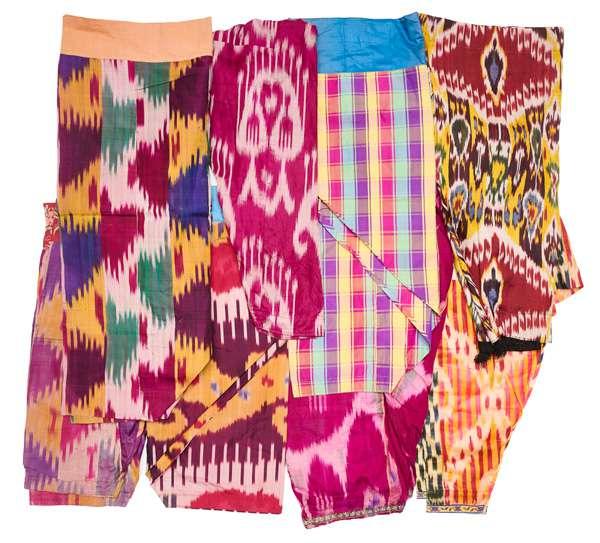 See Atanova, S., et al, Central Asian Textiles: The Neville Kingston Collection, London, 2025, Cat. No. 2.100, p. 237, for a pair of lozim (women’s trousers) made up in a similar ikat.
