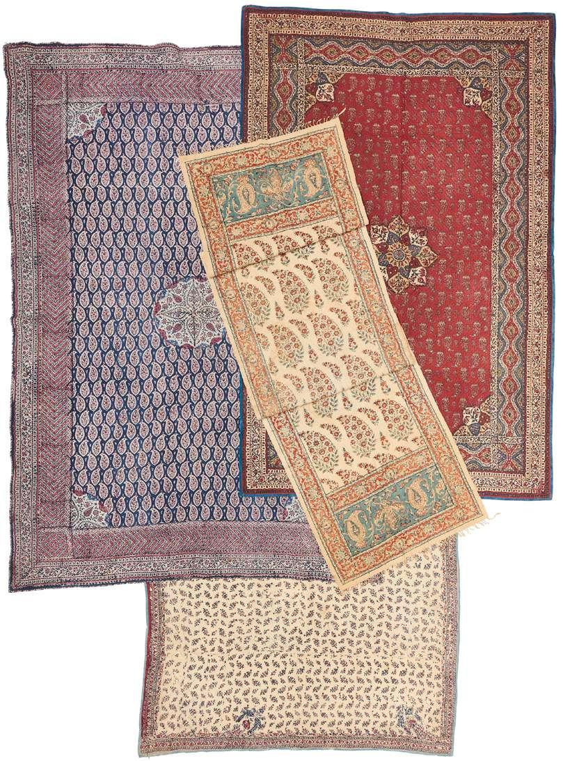 THREE KALAMKARI KANTHA FLOORSPREADS, PERSIA, OR INDIA FOR THE PERSIAN MARKET, LATE 19TH CENTURY