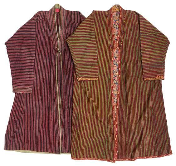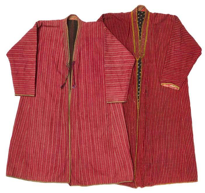 TWO STRIPED CHAPAN, CENTRAL ASIA, EARLY 20TH CENTURY