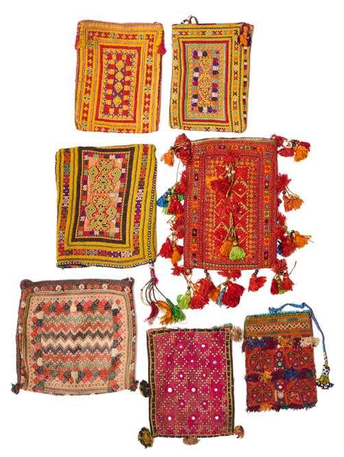 A COLLECTION OF SEVEN EMBROIDERED POUCHES, AFGHANISTAN, 20TH CENTURY