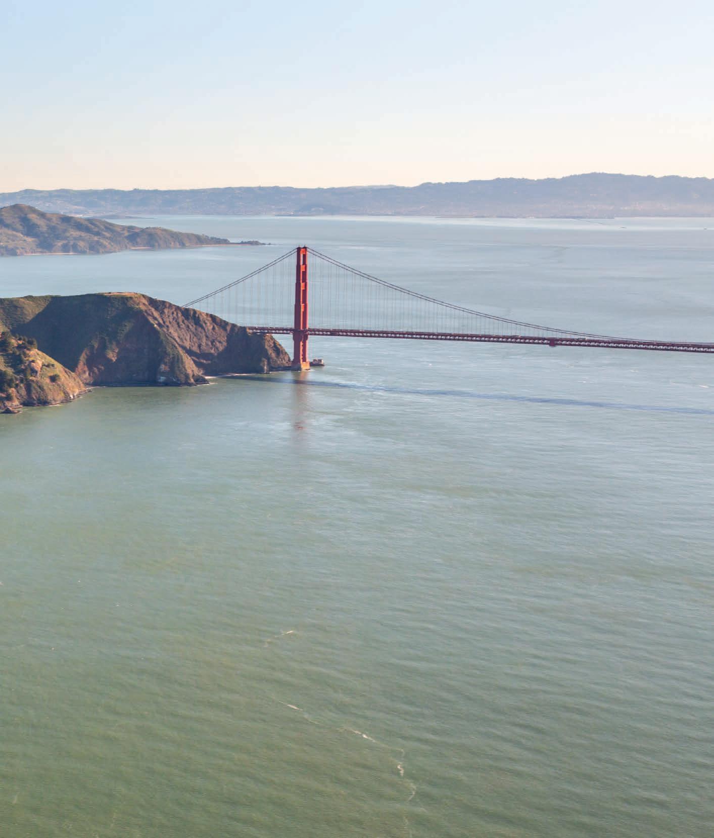 IT’S A BIRD, it’s a plane — almost; really it’s Marin Magazine photographer Sean Cope in a seaplane soaring above the 60-by-12-mile expanse of water known as San Francisco Bay. Cope joined Seaplane Adventures’ pilot A aron Singer on board the craft to get the breathtaking shots (also seen on the cover) for our piece examining that amazing body of water. Writer Kimball Livingston does the rest, pointing out the dynamic aspects of the bay and how they will come into play at the 34th America’s Cup to be held here later this year.