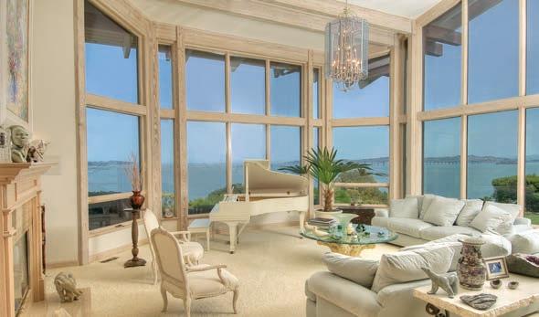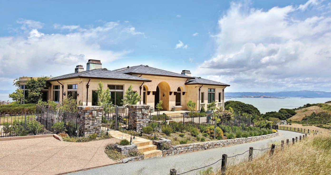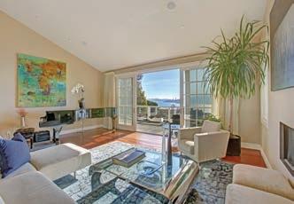Majestic, parklike estate. ±9500 sf European-style residence with Mt. Tam views on ±1.42 acres. Two-story entry and staircase of Italian marble, formal living room, terrace overlooking the pool, spa & grounds. 4 bedrooms, 5 full & 3 half baths… $7,500,000 Private and spacious three-story contemporary designed to capture the light and the views of Angel Island and Racoon Straits. Dramatic great room with floor-to-ceiling windows with Bay views, open beam cathedral ceiling and fireplace. Den, family room/library, 4 bedrooms, 3.5 baths… $2,995,000