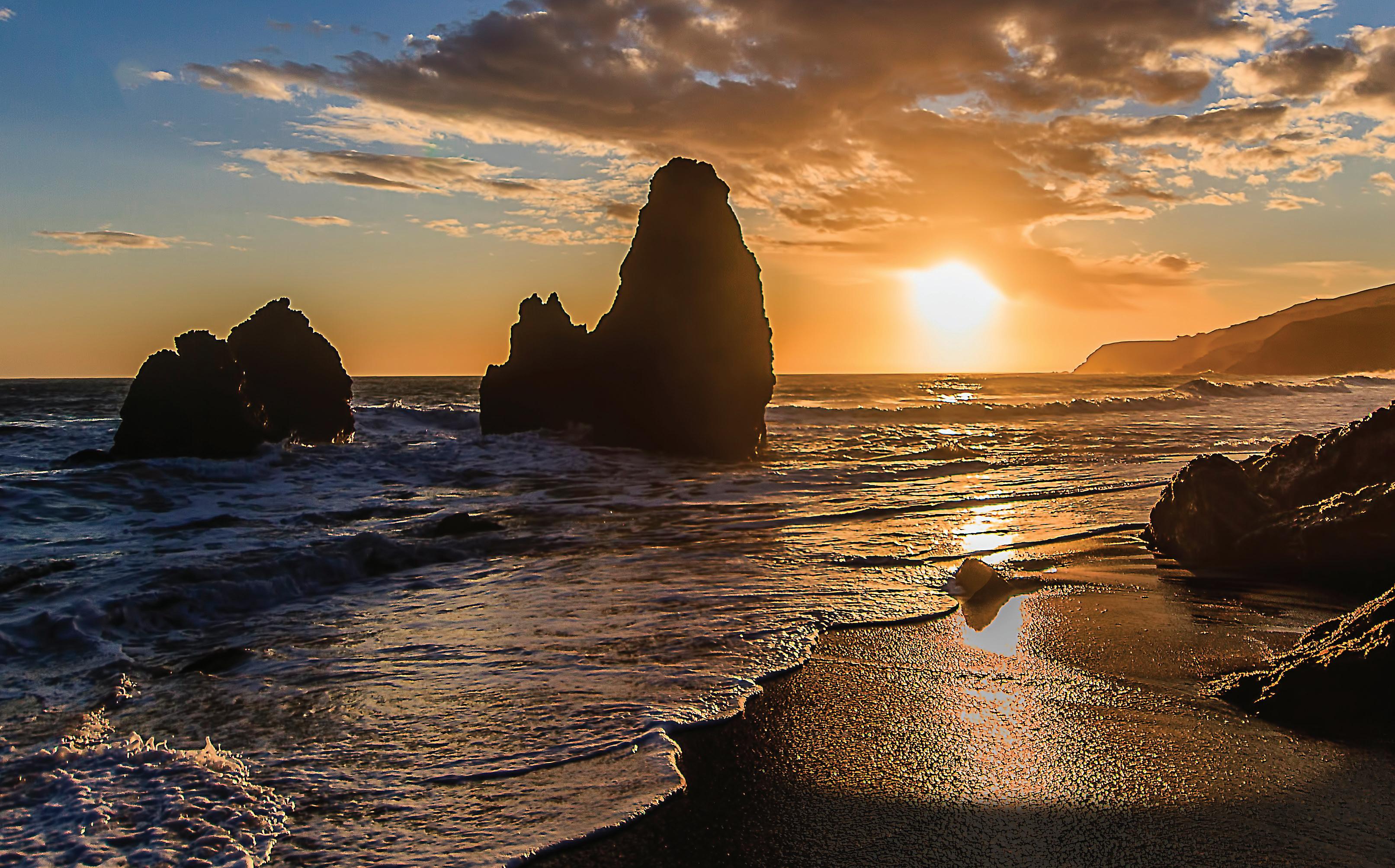 High-dune location with stunning large-window views of the beautiful beach and breakers. Upper (split) level with light-filled great room and the incomparable beach views, vaulted ceiling, great fireplace, built-ins and dining area, adjacent the sunny kitchen, ocean-side master suite and the beach-side lanai. Entry level with central seating/TV area, two bedrooms (one en-suite), hall bath, laundry and the loft that sleeps 6 children. Three bedrooms, three baths, beautiful and private court-yard garden, four-car parking and one of the most beautiful beaches in California… $4,495,000