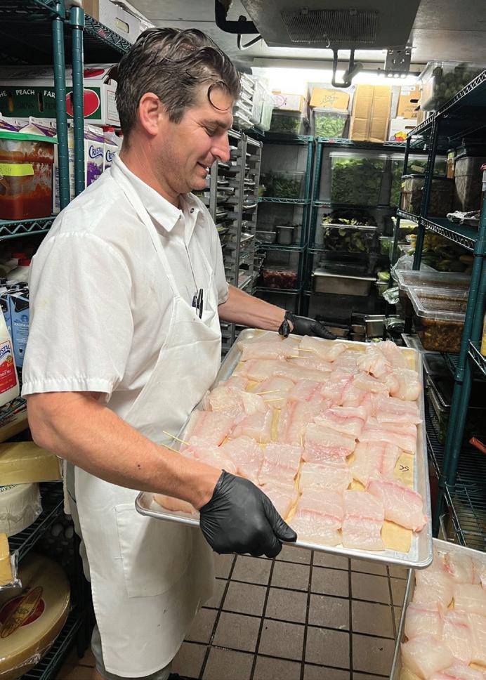 After high school he went to cooking school and embraced the culinary, fishing in between cooking on the line. “When the motor is humming, it’s like the hood in the kitchen,” he says. “I get in the zone.”