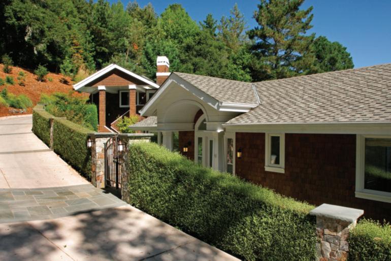 This unique, 3,000± sq. ft., gated, one-story residence sits next to open space on approximately 1 acre of beautifully landscaped grounds with a sweeping panoramic view of San Francisco, the Golden Gate Bridge, Sausalito, and Mt. Tamalpais. The exterior of the house is Port Orford cedar – a special vertical-grain cut of white cedar. There is a covered carport, circular driveway and four distinct, but connected, outside entertaining areas including a pool. The home has simplicity, grace, charm, and California-styled elegance with a floor plan that is exceedingly livable and ideal for entertaining. The house has custom features throughout and was designed for privacy and to take advantage of the setting and spectacular views from all the rooms. Building materials emphasized the use of the finest woods and extensive use of glass. All rooms have floor-to-ceiling French doors that open to vistas and outdoor private areas. The total effect is privacy and a celebration of nature. Four bedrooms, three baths… $4,995,000