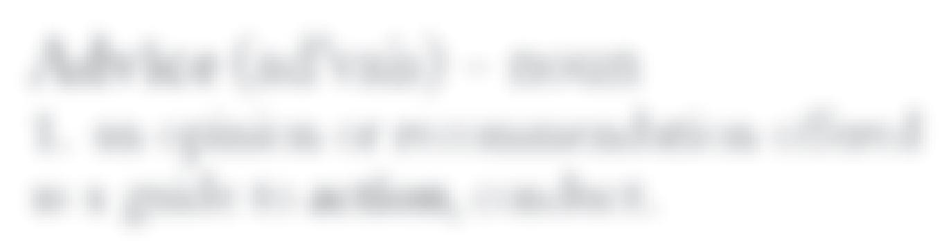 1. an opinion or recommendation offered as a guide to action, conduct.