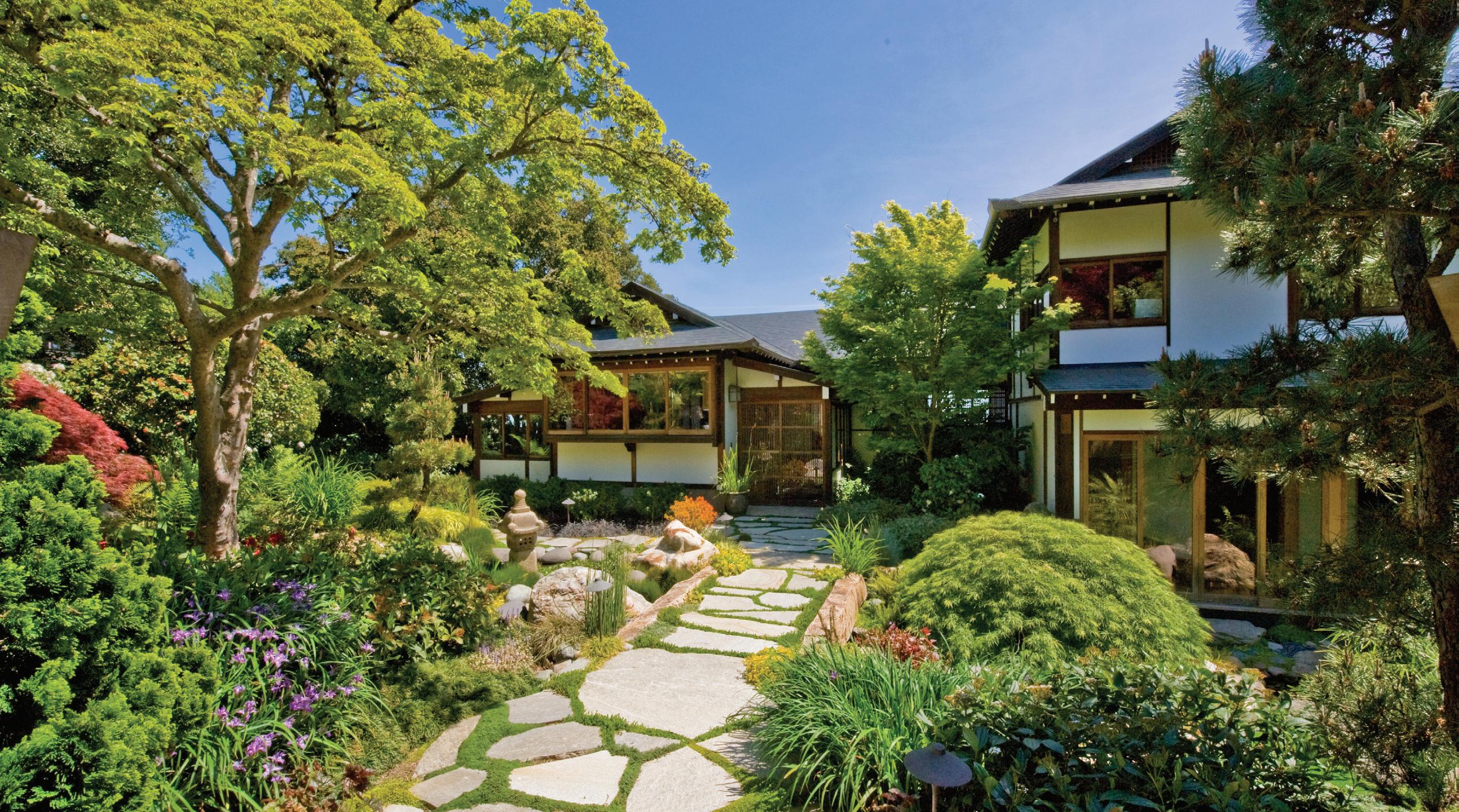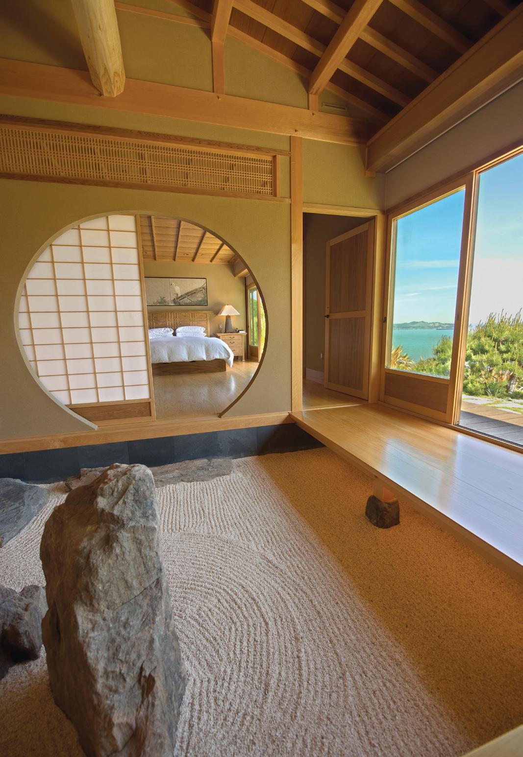 Extraordinary fusion of rare and authentic 16th century Japanese architecture and 21st century luxury and technology. Private estate at the end of the cobbled and gated drive, this property embodies the one-of-a-kind melding of modern luxury and traditional Japanese architecture, sophisticated technology and stunning Japanese gardens, beautiful bay views and graceful serenity. Containing key components of traditional Japanese temples and homes, including nearly invisible mortise & tenon & dovetail wood joinery, massive spanning logs of pine, fir & curved beam of incense cedar, walls of lime plaster with soil from the site applied by plasterers from Japan, raised engawas commanding Bay & garden views, bath with soaking tub on tile floor, shoji screens, tatami mat room with tokonoma, and the majestic hipped gable and shed roofs of copper, with their depth and graceful overhanging eaves, all combine to provide a rare opportunity to experience American life, Japanese style. Five bedrooms, (three master suites) and five full baths…