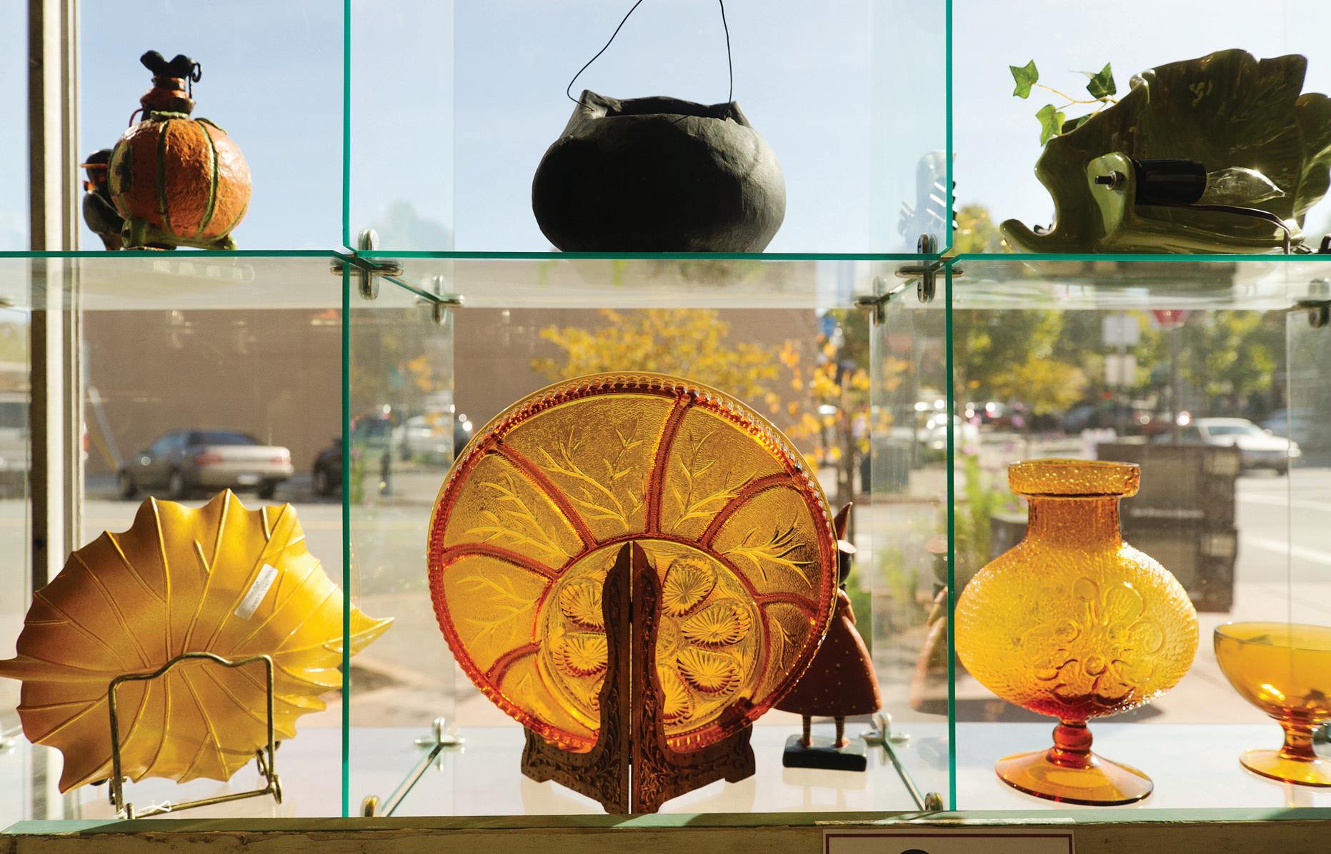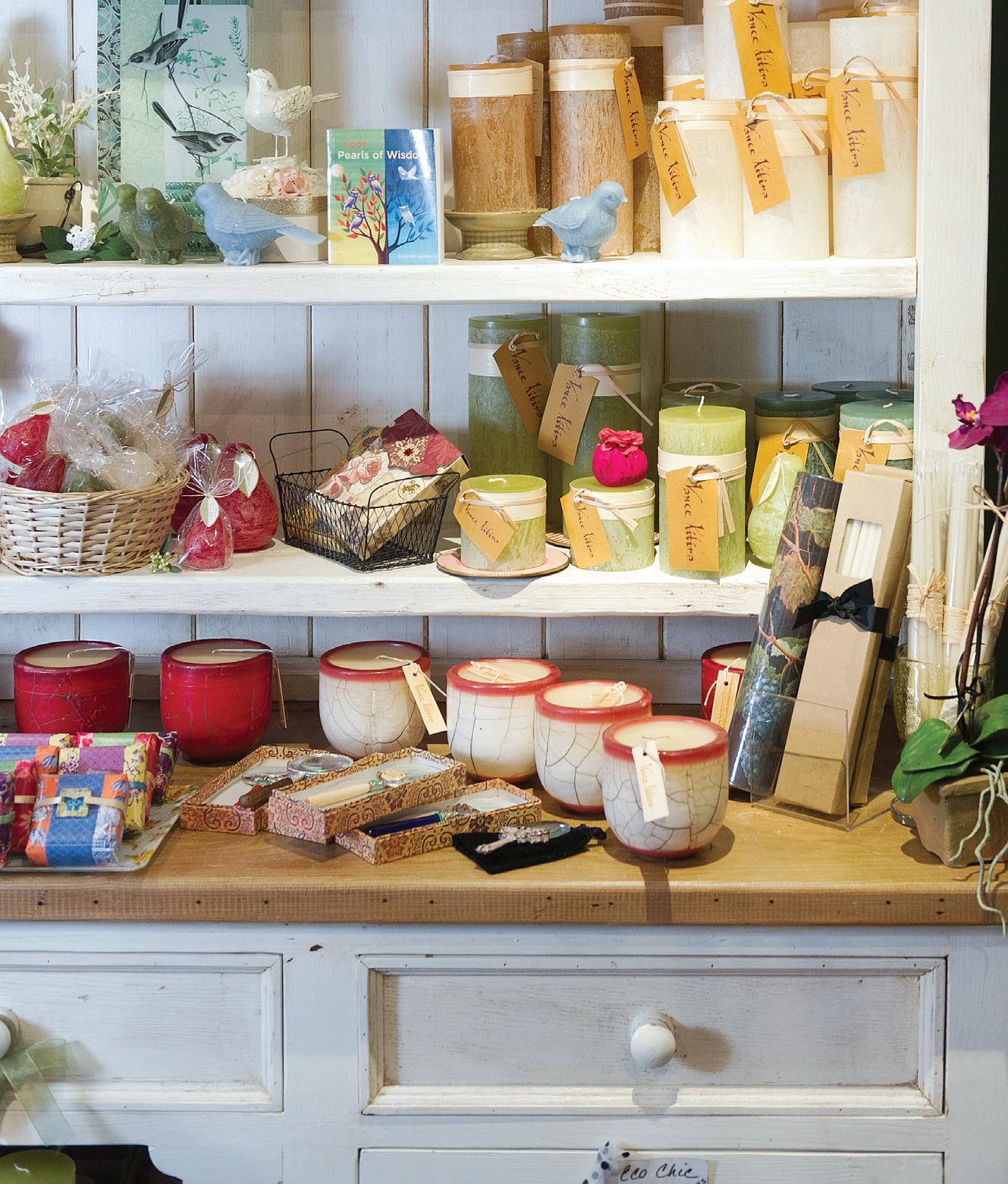 left: Dishes and antiques from Sentimental Journey Antiques. below: Items from the Morris & Company gift shop.