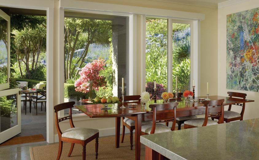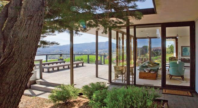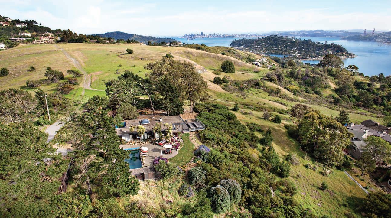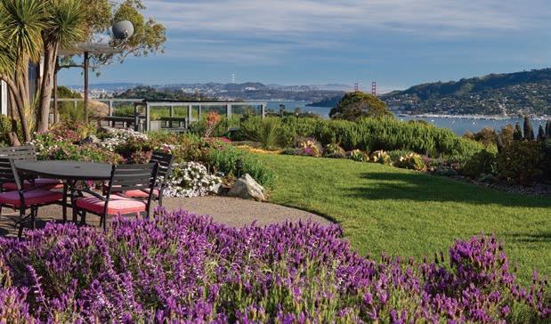 This stunning approximately 5200 square foot four bedroom, three full and two half bath house has panoramic San Francisco Bay views. The landscaping on the one acre oak-fi lled site is a labor of love with lavender fi elds, rose and dahlia gardens, dramatic hedges, a splash pool and a fabulous view site for a guest cottage. Owner supervised construction ensured the highest standards, combining modern amenities with traditional design elements. Just two minutes to Marin’s fi nest independent schools and twelve minutes to the Golden Gate Bridge.