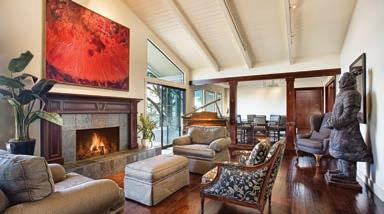 Serenely sited behind a private gate, 390 Corte Madera Avenue is a peaceful place you will immediately call home. The exceptionally upscale kitchen features a Subzero refrigerator, a Wolf range, Bosch dishwasher, and opens to the “great room” with a brick wood burning fireplace. Peaked open beam ceilings, gleaming hardwood floors and plantation shutters are just a few of the essential touches that add to the allure. A home office, den or children’s playroom adjoins the living area, adding flexibility to your lifestyle. 3 bedrooms, 2 full baths and a powder room (all updated, with wainscoting trim) and a large, 2 car garage plus storage complete the home. Beautiful grounds include outdoor dining and entertaining deck and patios, gazebo, a pool and spa, and mature gardens.