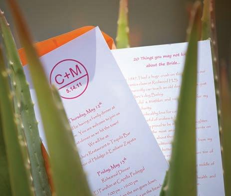 Appropriately titled, “Blissful Beginnings” introduces four adorable couples — most of whom met in Marin in high school. Each couple chose a distinctive way to say “I do,” such as touring downtown Mill Valley and watching fi reworks on the Pacific coast of Baja. We hope you’ll enjoy meeting these couples as much as we did writing about them.