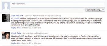 KC Turner (“Calling All Musicians,” November 2011) remains a major force in building music community in Marin, San Francisco and the