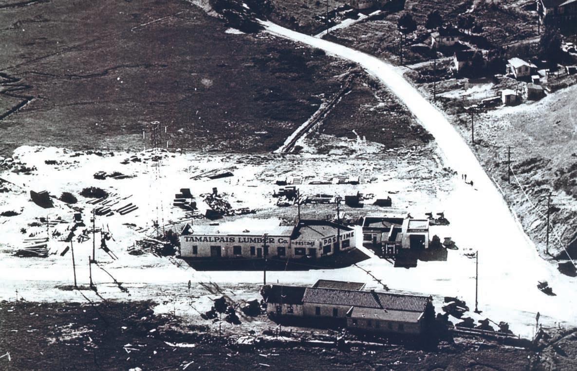 ICTURED ABOVE IS a 1930 aerial view of Tam — or Tamalpais — Junction. The street running straight across the photo is today’s Shoreline Highway. The image was taken before the Redwood Bridge was completed across Richardson Bay; thus, this was the only way to get from San Francisco and Sausalito to San Rafael and points north.
