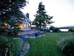 Continue up a curved stairway to a gracious entry that welcomes you to the bedroom level. Two en suite bedrooms are spacious and inviting –one with its own deck and the other with doors leading to the rear patio with stairs to the lawn above and roof deck with barbecue, perfect for dramatic entertaining. Another spacious bedroom off the hall is focused on the views. The master suite completes this level and is the perfect retreat. It features a sumptuous master bath with a spa tub looking out to the water view, double sinks, a huge shower and marble counters and floor. It offers two walk-in closets and doors leading to the back patio.