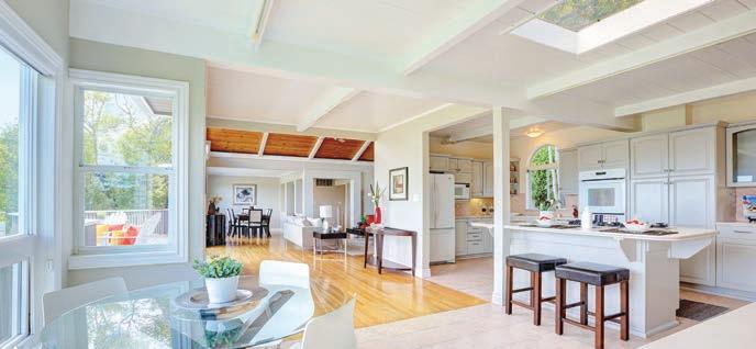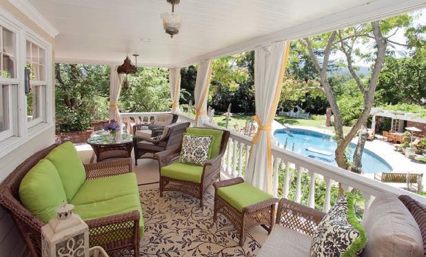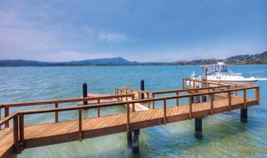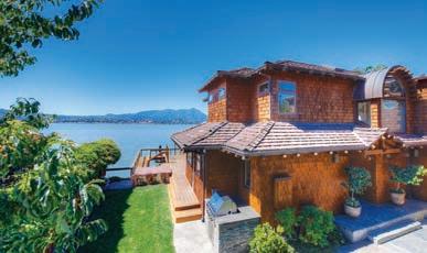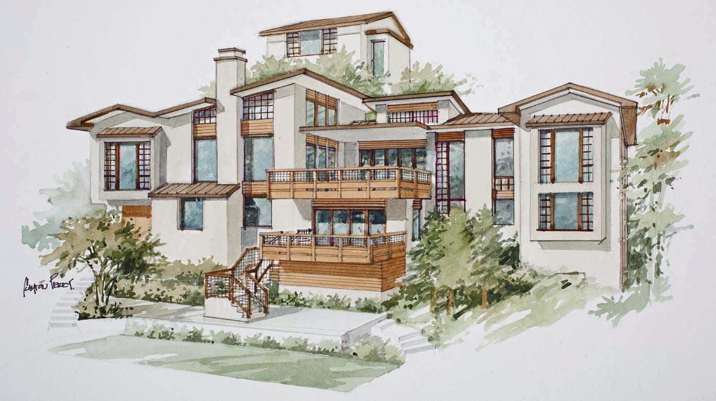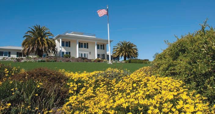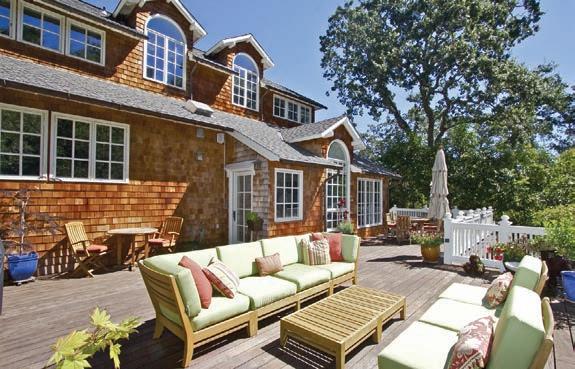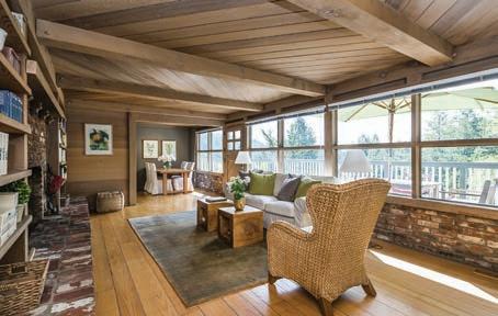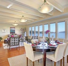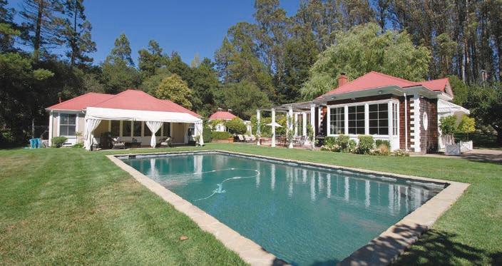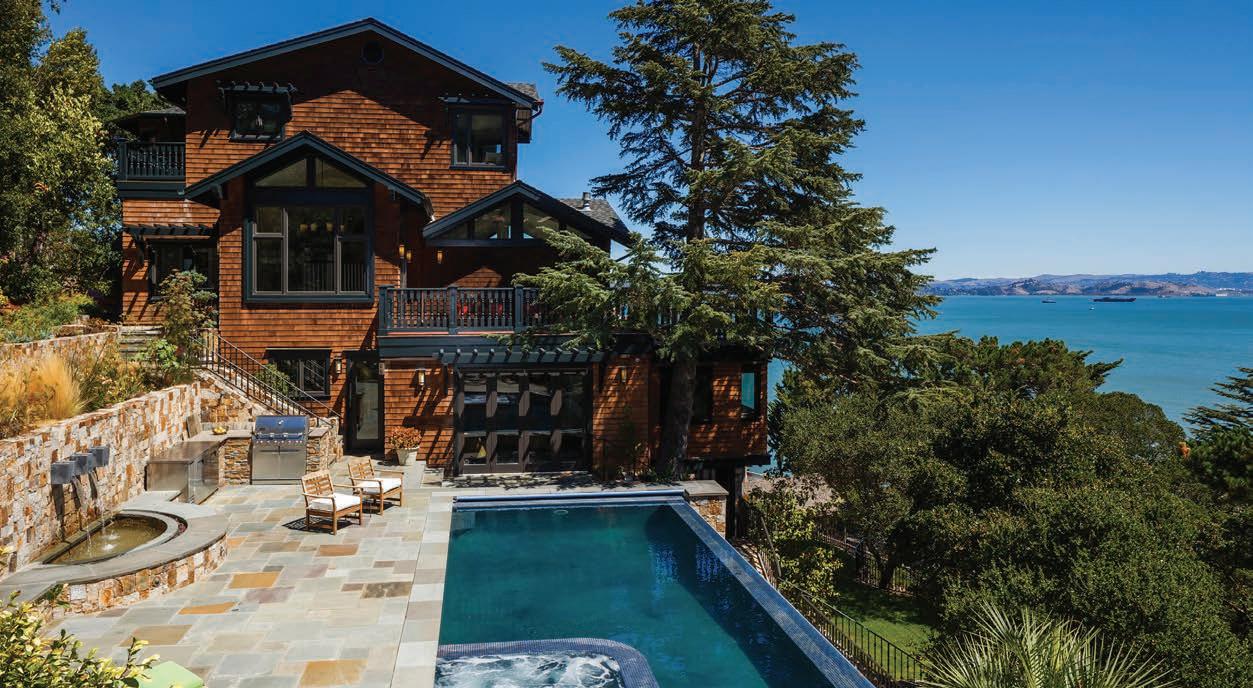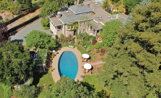 Originally built as a hunting lodge, it is now a majestic estate of 5900+ sq. ft., with 3 spacious en suite bedrooms plus an additional bedroom and 2 half baths. Updated and special features include a newly added formal dining room, remodeled kitchen/butler’s pantry, 1000 sq. ft. patio, executive o ce suite/ conference room, indoor gymnasium/basketball court, sound proofed music studio and meticulously manicured grounds featuring a regulation size pitcher’s mound, bocce ball court, and horse shoe court. ParadiseLodgeTiburon.com
