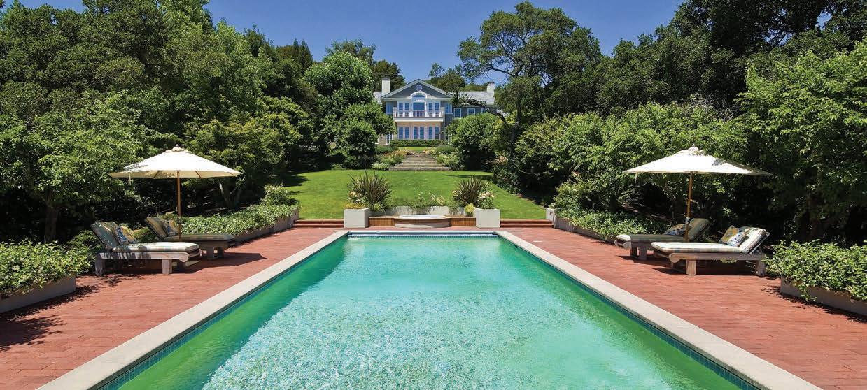 This estate is located in one of Marin County’s most coveted locations just minutes from Highway 101 and the Golden Gate Bridge. Luxurious finishes combine to e ect an elegant understatement and enhance outdoor living on a rare, 3+ acre parcel with remarkable views of Mt. Tamalpais. The home is approx. 7,100 square feet with French door accesses to private balconies, intimate verandas and the land. Grounds include a fabulous entertaining area with pool and spa, olive and fruit orchards, vegetable and flower gardens, lawns and woodlands all irrigated by a private well. Two garages include workout room and shop. A private paradise, this beautiful property embodies the best of California living. 310PalmKentfield.com