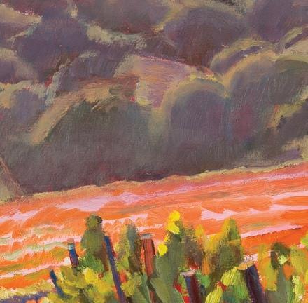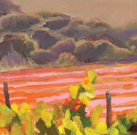 Sausalito’s Kay Carlson is an art teacher, a plein air painter specializing in Northern California scenes and a cofounder and current executive director of Marin Open Studios. Our cover image of her painting Cline Golden Eagle was “created in mid-November when the slant of light brings a glow to color in shadows,” she says. “For me it is thrilling to be in the hills alone with only the changing drama of light and my own struggle to catch it.”