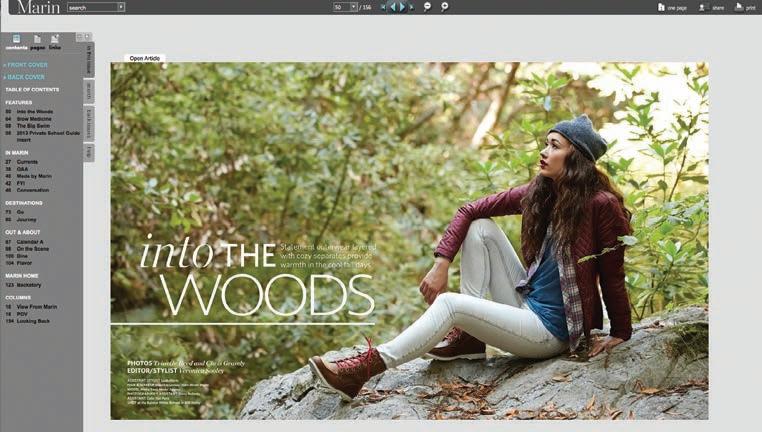 Volume 9, Issue 10. Marin Magazine is published in Marin County by Open Sky Media. All rights reserved. Copyright©2013. Reproduction of Marin Magazine content is prohibited without the expressed, written consent of Open Sky Media. Unsolicited materials cannot be returned. Marin Magazine reserves the right to refuse to publish any advertisement deemed detrimental to the best interests of the community or that is in questionable taste. Marin Magazine is mailed monthly to homes and businesses in Marin County. Marin (USPS 024-898) is published monthly by Open Sky Media, One Harbor Drive, Suite 208, Sausalito, CA 94965. Periodicals Postage Paid at Sausalito, CA, and at additional mailing o ces. POSTMASTER: Send address changes to Marin Magazine, One Harbor Drive, Suite 208, Sausalito, CA 94965.
