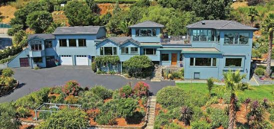 Jerry Garcia’s former estate is regarded as one of the true jewels of Nicasio, if not all of Marin. Perched atop a sunny hillside the estate o ers expansive views from Mt. Tam to the Berkeley Skyline. The approx. 7,000 sq. ft., 5 bedroom, 7 bath, Mediterranean style home sits on approx. 11 acres and has all of the amenities of an extraordinary villa. Besides the lovely grounds, pool, and hot tub, there is an approx. 1,500 sq. ft. artist’s studio, a 6-car garage, an organic garden, and even a high volume well fitted with a water purification system. Approx. 12 min to HWY 101 and 35 to the Golden Gate Bridge. This property can be purchased with nicasiogreenacres.com which is approx. 115 acres and is independently owned. 55ElMirador.com