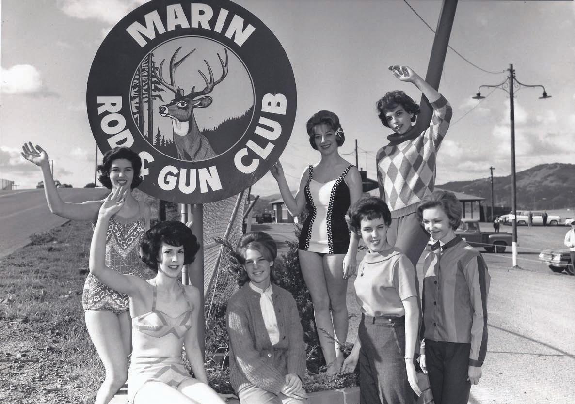 STABLISHED IN 1926, the Marin Rod & Gun Club has a friendly bar, a spacious banquet hall and a patio and lawn overlooking the 55 acres of land the club owns along San Pablo Bay. The club also controls a nearby fishing pier that juts almost half a mile into the bay. Initially, MR&GC was located in Santa Venetia; it moved to its current location at Point San Quentin when the Richmond–San Rafael Bridge was completed 57 years ago. Until 1994, the club was an all-male bastion. “Now it’s pretty much a social club,” says longtime club secretary Pat Damos of San Anselmo, “with men and women, but mostly men.” The club’s sign, pictured above, lasted only until Highway 580 was widened in the early 1960s. As for the young women calling attention to the club’s new location in 1956, no one knows where they are now. We would appreciate hearing from readers who might know where any of these women are now — send us a note at editorial@marinmagazine.com with information. m
