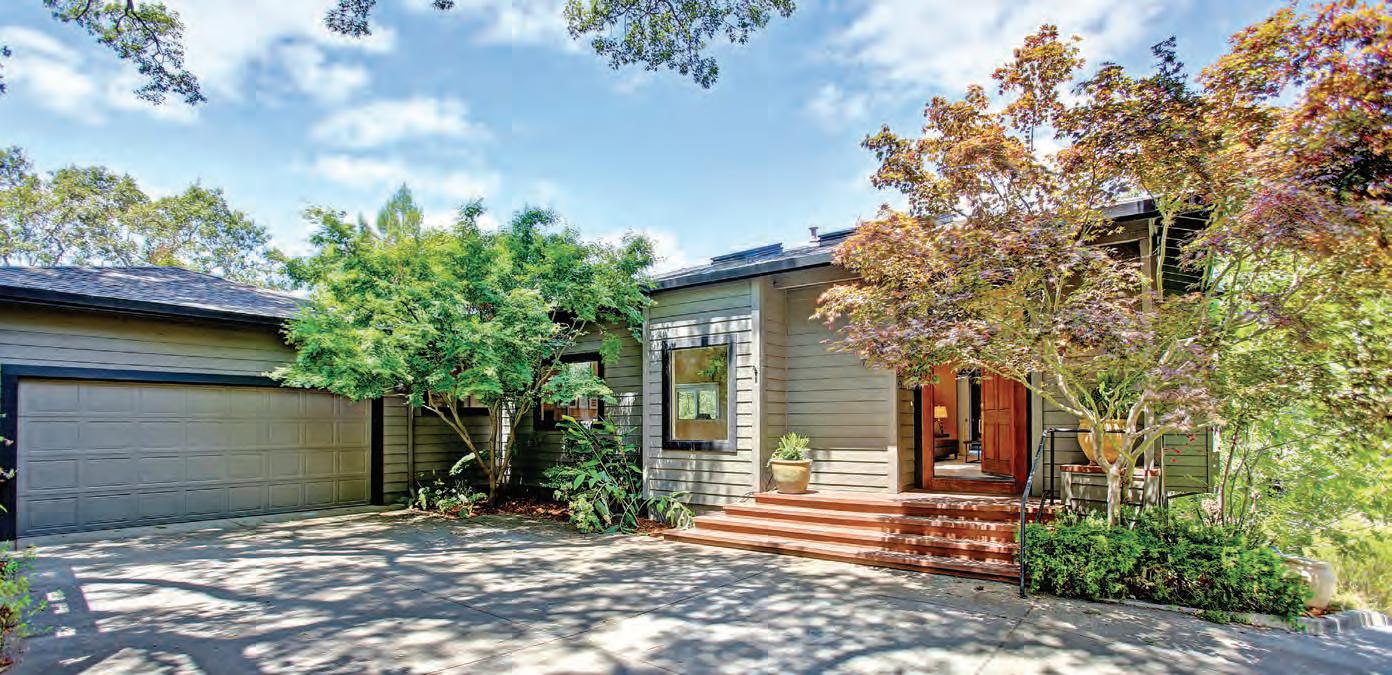 In this architect’s magni cent tree house, light pours into the two story windows that look out over the canyon. Quintessential Mill Valley, this 3BD/2BA house with a den, o ce nook and stunning remodeled kitchen that opens to an intimate garden on one side and an expansive deck on the other is the perfect retreat.