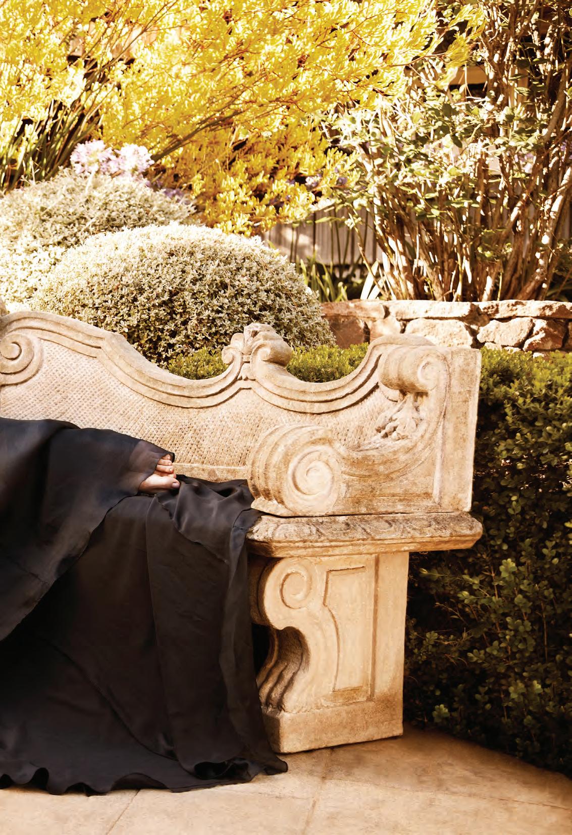 It’s one of our biggest issues of the year, so we pulled out all the stops to bring you the ultimate fall fashion preview. f or this photo shoot at the beautiful Campodonico e state gardens in Kent field, we enlisted the help of a stellar camera-wielding team from s an Rafael. Indeed, t rinette Reed and Chris Gramly, who are also a couple, had the perfect eye to capture the glamorous blacks, golds and greens worn by our model Lauren. t he results are looks perfect for any fall party or gala.