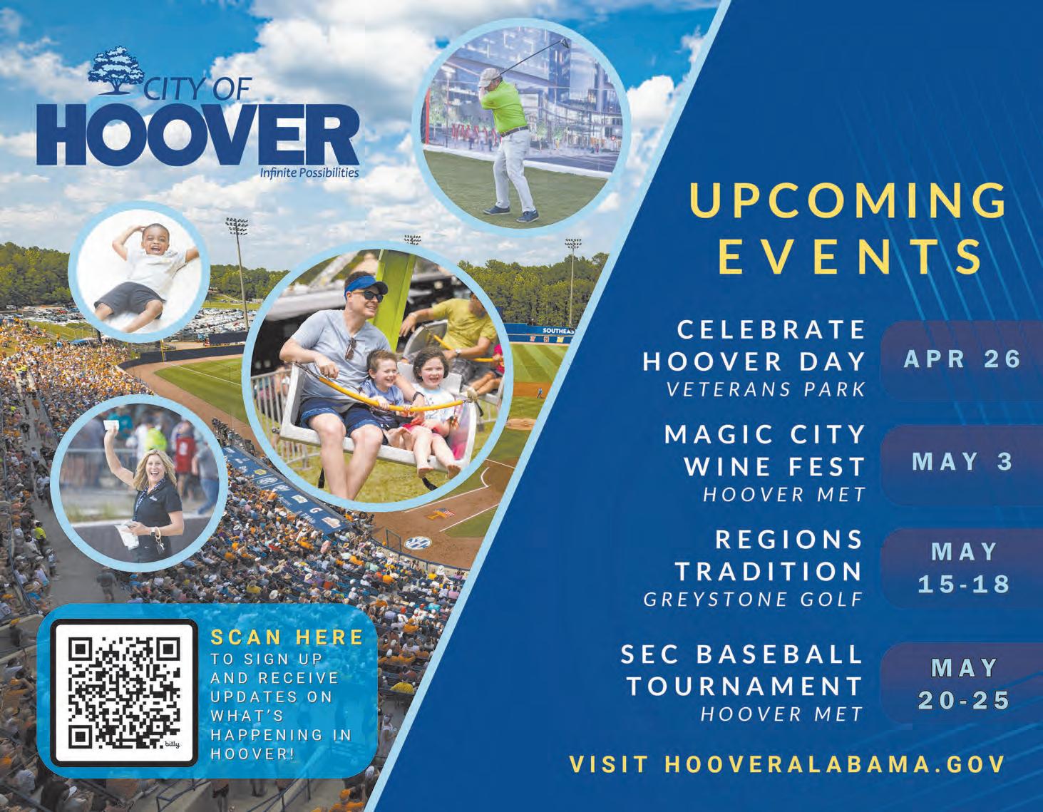 Hoover is a business-friendly city with a diverse economy, scores of recreational opportunities and world-class public schools. The people of Hoover represent the world while demonstrating tremendous civic pride and spirit.