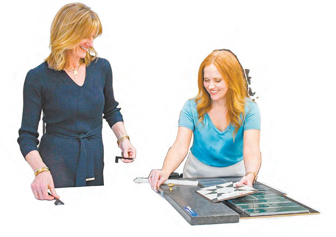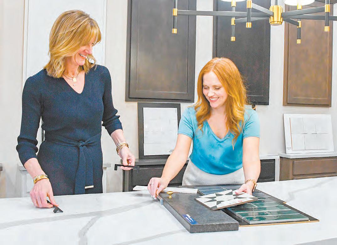 Nancy Hale, left, and Sarah Turner look through samples in a model house at the new Everlee development in Hoover. Photo by Savannah Schmidt.