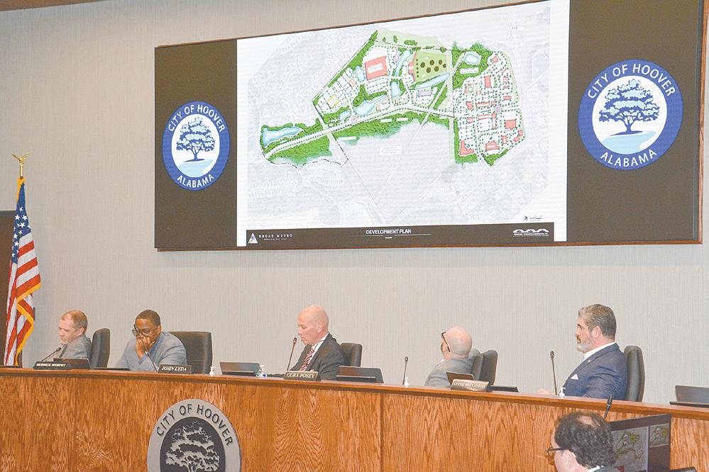 The Hoover City Council on April 1 discusses a proposed tax incentive package for the second phase of the Stadium Trace Village development. Photo by Jon Anderson. See STADIUM TRACE | page 24 Hoover parents concerned about sexually graphic books and background checks for outsourced school aides. Hometown star Trey Jemison making most of NBA chance. See page 15 See page 17 Voicing Concerns New Heights