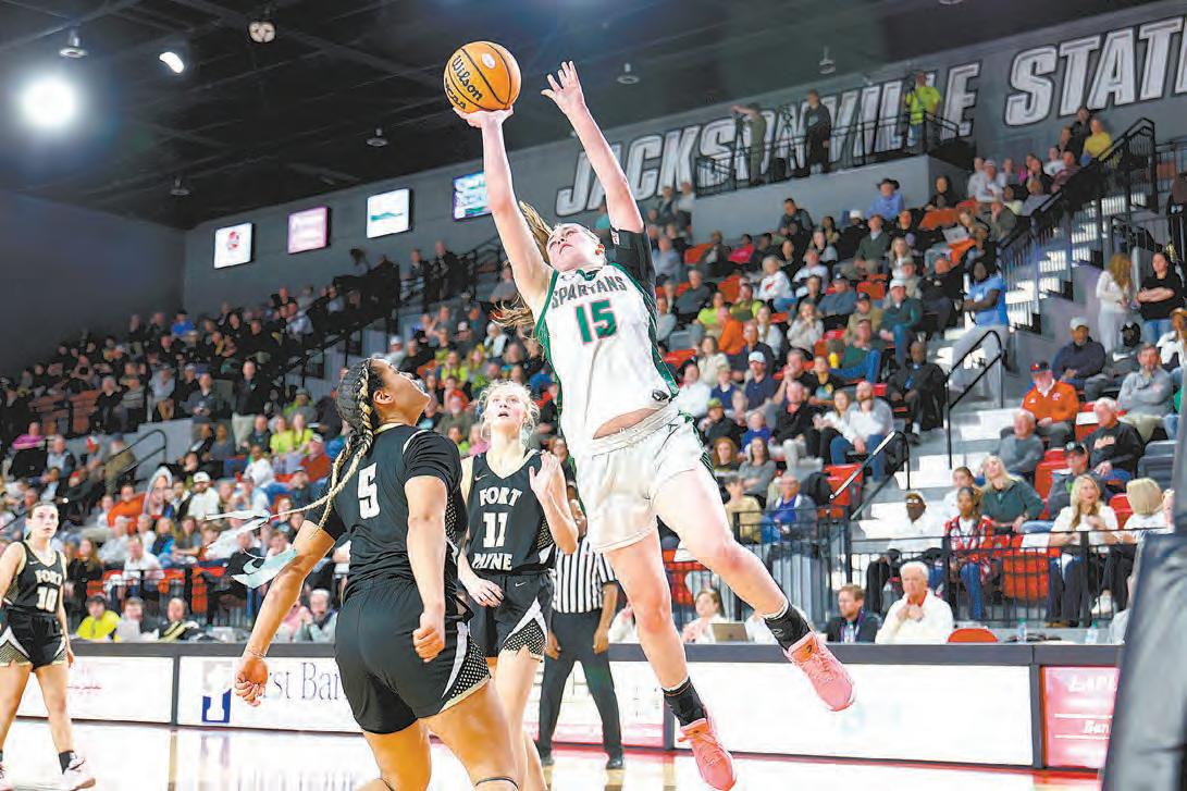 The Lady Spartans fell to Fort Payne 52-37 in the ortheast egional final. Mountain Brook 1 -1 fell behind early but rallied to a 1 -1 deficit at the end of the first uarter as junior Maddie Walter scored all 10 points for the ady Spartans.