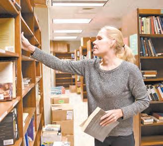 Ginger Hopper, the intake coordinator for the Friends of the Library group with Mountain Brook’s O’Neal Library, shelves a selection of donated history books in the basement at the library. The Friends of the Library group is the recipient of the 2022 Tynes Award. Photo by Erin Nelson.