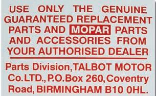 The club now has the following under-bonnet decals in stock