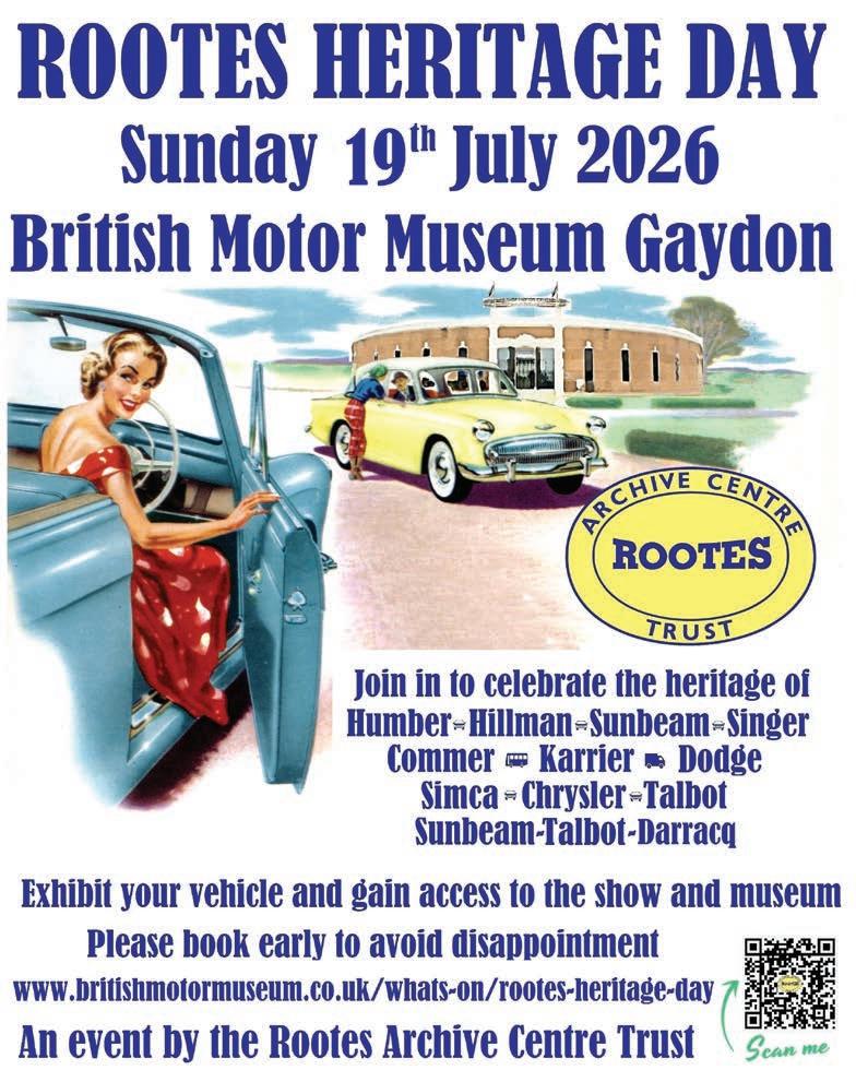 If your planning on going to an event in 2026 then send details to editor@ sunbeamlotus.com before 1st June and we will add it to the list for the next edition of our mag.