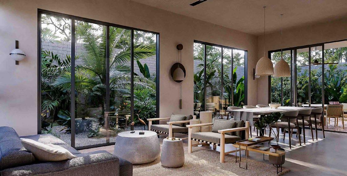 The heart of the house is spacious living room and kitchen area with large glass doors from floor to ceiling, connecting the space with the pool and deck area, for an airy sensation Interior and exterior merge and you can feel the jungle in the midst of comfort Fans by the company “Big Ass Fans” in living, kitchen and all bedrooms, all controlled by mobile app Definitely the place where you will spend most of the time