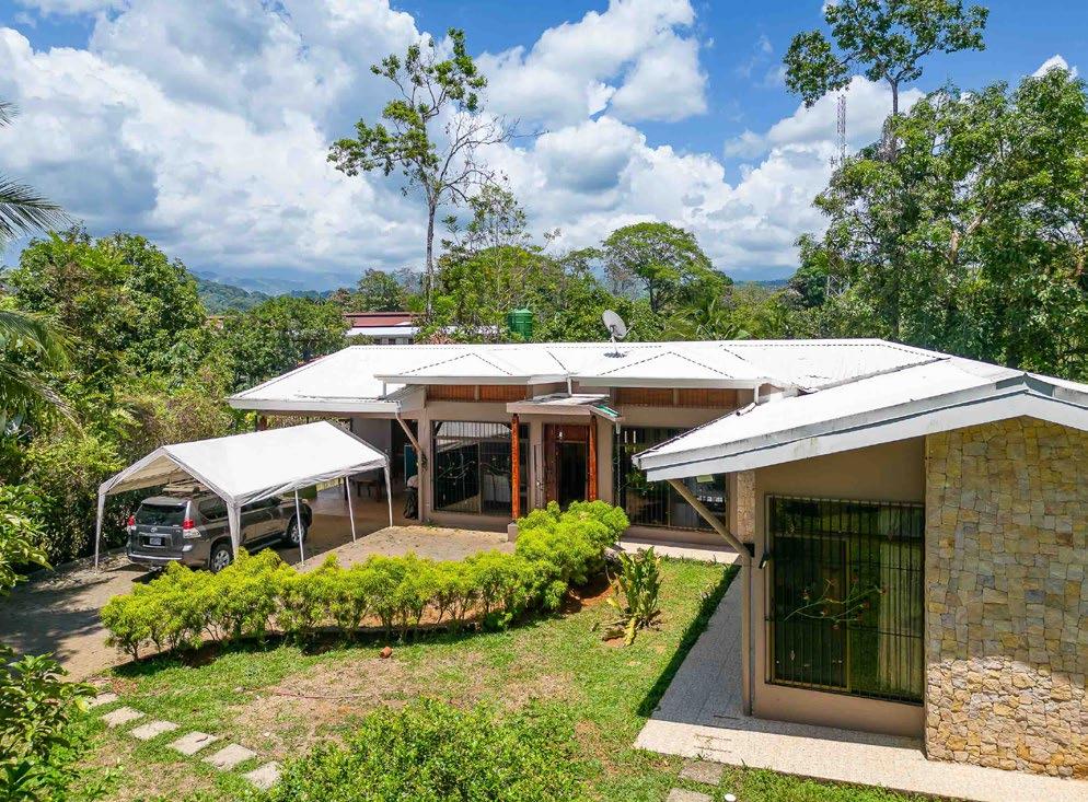This one level home is located in the quaint town of Naranjito, which is just 15 minutes from the Quepos Marina Pez Vela and 20 minutes from the Manuel Antonio beaches and park The home sits on a lovely half acre property with mature fruit trees, native hardwoods, and cleared grassy areas