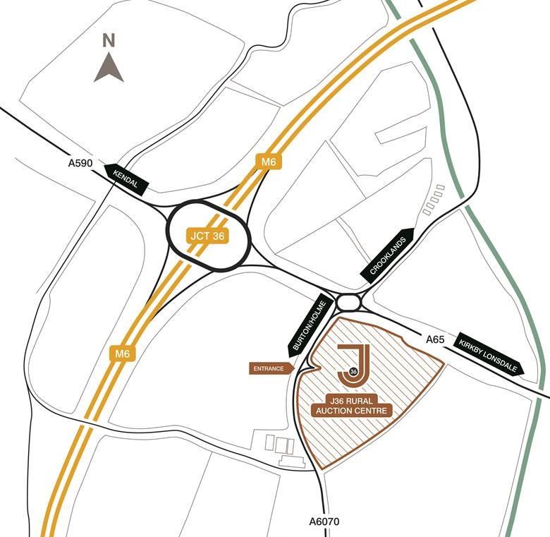 From the East follow the A65 through Kirkby Lonsdale and towards the M6, at the first approach take the first le on the roundabout signposted Holme & Burton and the Auc on is immediately on your le .