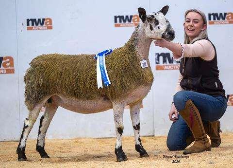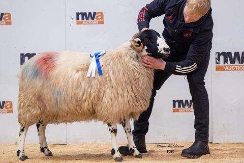 The 1st prize gimmer shearling from MR Thornborrow, Dawyk sired by SO21 Riddings Longshot, in-lamb to their homebred VO10 sire went on to make 2200gns and was purchased by Miss Millie Richardson, Ghyll House, Appleby.