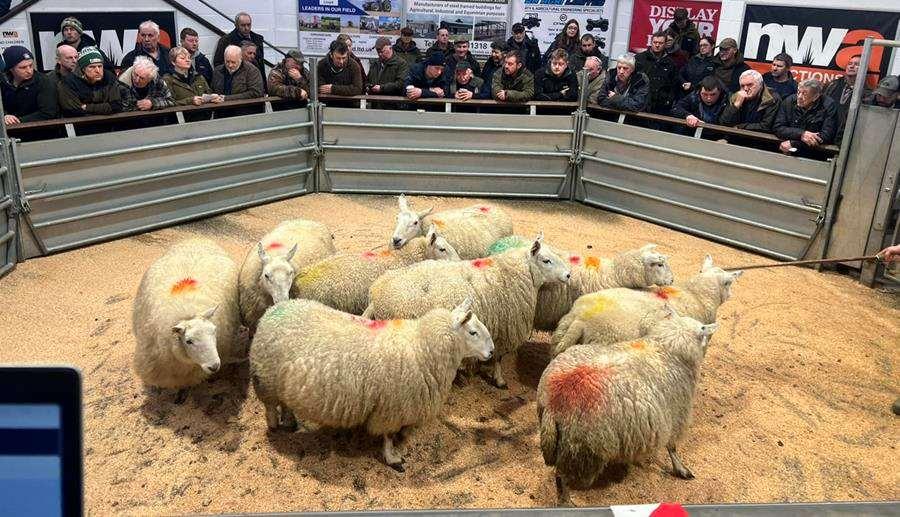 Cast Ewes Top Prices: SUFFOLK: £265, £262 Hawkswell Farm, £190 Ackenthwaite Farm, £168 Halton Park Farm, £150 Moss Head, £144 Station Hotel Farm. BELTEX: £242 Hill Farm. TEXEL: £238 Springfield, £222 Moss Head, £218 High Green Farm, £214 Nab House, £210 Ackenthwaite Farm, £200 Station Hotel Farm. HAMPSHIRE: £196 Endmoor Farm. LEICESTER: £182 High Green Farm, £166, £146 Woodbroughton Barn. CHEVIOT MULE: £178 Sunny Bank, £176, £170 Low Tarn Green, £164 Lower Brockholes Farm, £156 Low Tarn Green, £144 Sunny Bank. MULE: £172 Boundary Beck, £170 Station Hotel Farm, £168 Endmoor Farm, £168 Ackenthwaite Farm, £166 Low Woodhouse, £166 Mireside Farm. CONTINENTAL: £164 Park House Farm, £138 Raw Foot, £124 Low Barns Farm, £108 The Helks, £86 Low Barns Farm, £80 High Farm. CHEVIOT: £162 Nook Farm, £150, £118, £70 High House Farm. ZWARTBLE: £160 Nook Farm, £142 High Farm. ROUGH FELL: £140 High Green Farm, £136 Woodside, £132 High Farm, £127, £123, £111 High Swinklebank Farm. SWALEDALE: £132 High Farm, £108 Nether House Farm, £106 Bridge End Farm, £100 Hollowgate Farm, £98 Cockley Beck Farm, £96 Nook Farm. JACOB: £124 Park House Farm. HERDWICK: £112 Barfield Farm, £108 Hawkswell Farm, £98 Mireside Farm, £96 Hawkswell Farm, £78 Cockley Beck Farm. HORNED: £82 Higher Salter. SCOTCH BLACKFACE: £50 High Farm.
