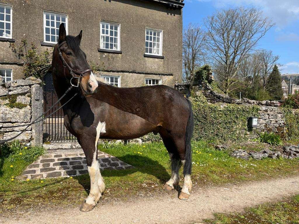 Super cob, been used in the riding school for novice to intermediate riders. He is a forward going fun cob, likes to pop a jump. Great in open spaces and in traffic. Will go first or last. Hacks out on own and in company.