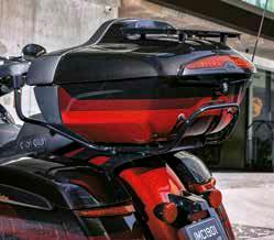 También cuenta con faro Led adaptativos Pathfinder con tecnología patentada de vanguardia, que mejora la visibilidad al monitorear el ángulo de inclinación de la moto. Su tablero negro brillante, las plataformas pulidas, el asiento con costuras a la vista, calefacción y refrigeración, el parabrisas acampanado y los reposabrazos negros para el pasajero, le brindan mayor elegancia. Por otro lado, los cubos de interruptores retroiluminados permiten que sea más fácil ver y seleccionar los controles manuales de la moto en condiciones de poca luz.