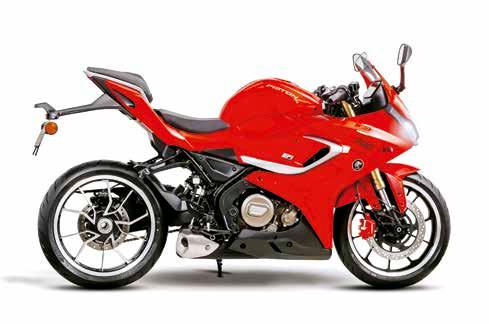 Comenzando por la California R300, se trata de una atractiva motocicleta deportiva con motor monocilíndrico de 292 cc enfriado por líquido y alimenta-