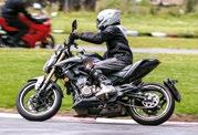 A continuación, fue el turno de la Bristol N400, una naked de diseño moderno que llamó la atención por su estética y robustez. Con un motor bicilíndrico pensado para quienes buscan mayor potencia y velocidad con una posición de manejo relajada, esta moto fue la favorita de varios participantes por la sensación de control y respuesta mecánica.