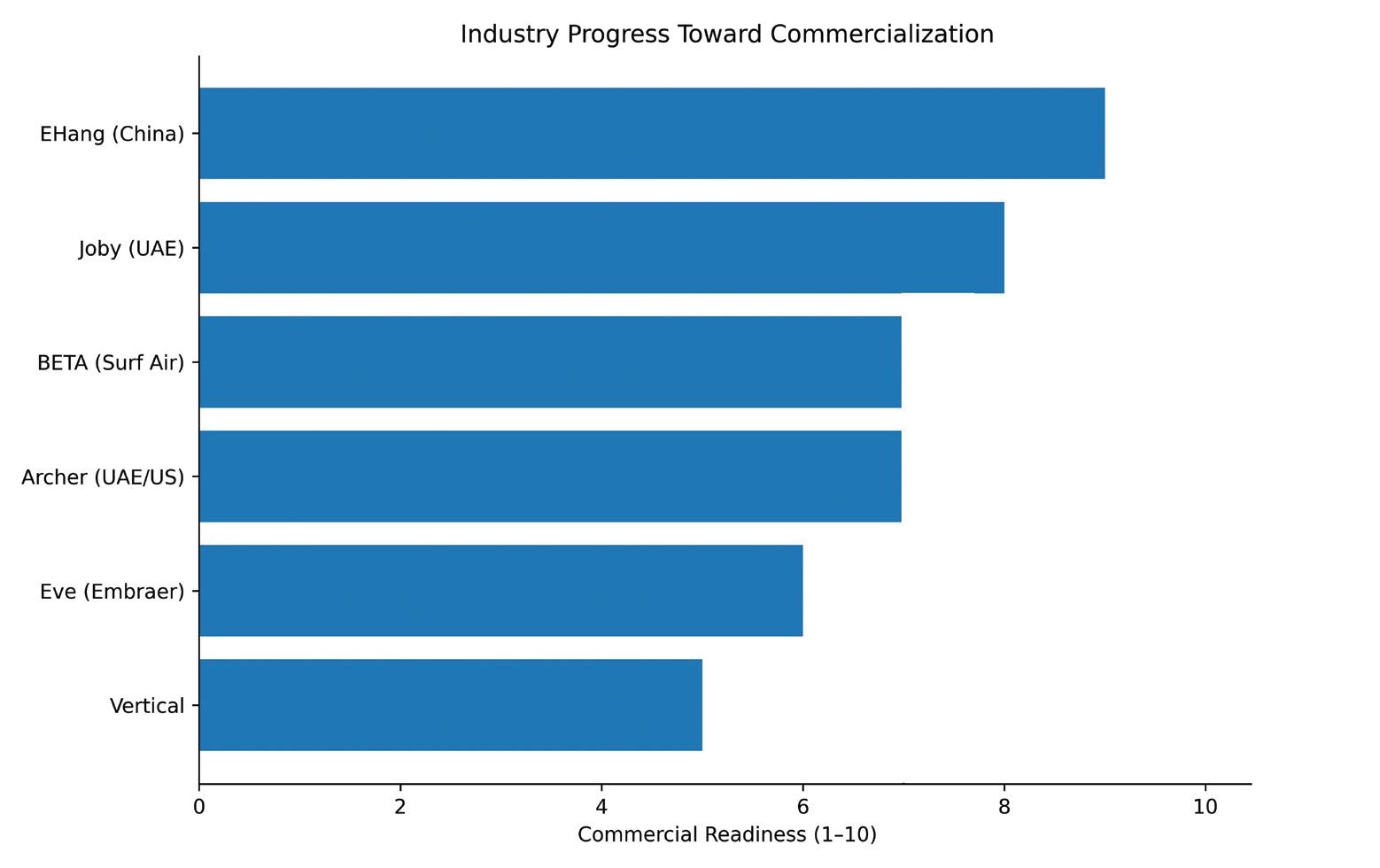 EHang currently represents the most advanced regulatory position. If its commercial operations proceed as expected, it will be the first to demonstrate real passenger service. Joby appears to be the closest among Western companies to achieving certification and initial deployment. Archer has built a strong narrative around partnerships, policy alignment, and its Olympic role. And BETA now stands out as a company with a credible near-term operational pathway through its Surf Air partnership. Eve, while not making headlines, offers a more traditional aerospace-backed approach, while Vertical Aerospace remains a participant with more limited financial flexibility.