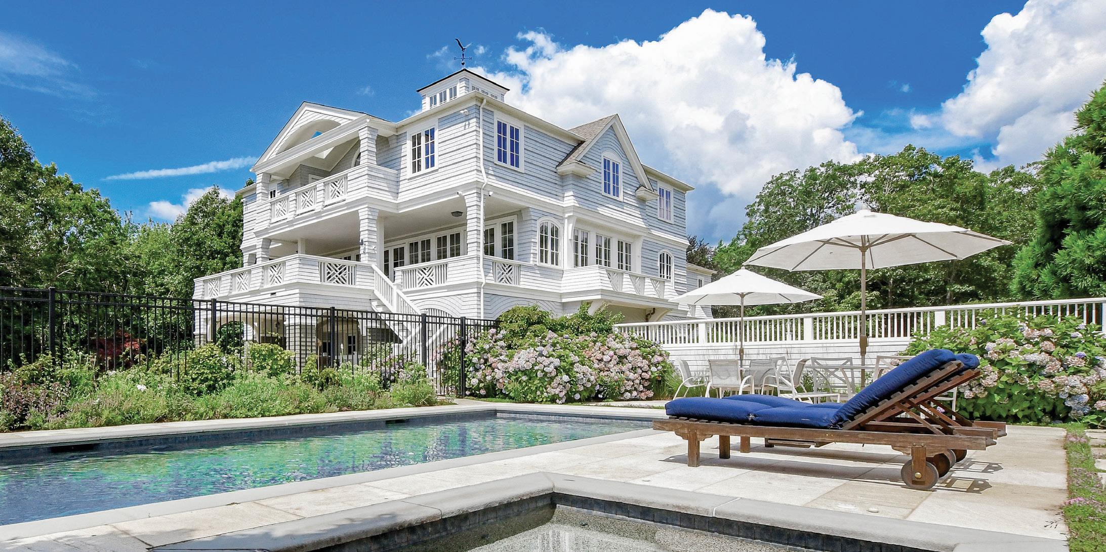Sprawling six-bedroom retreat with custom design, heated saltwater pool, three distinct bedroom wings.