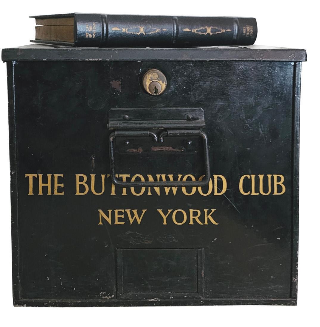 Magnificently detailed, an embellishment, ‘The Buttonwood Club.’ shows significant age due to the handcrafted lettering technique. The preserved item was found in Westport, Connecticut, a tony suburb of NYC.