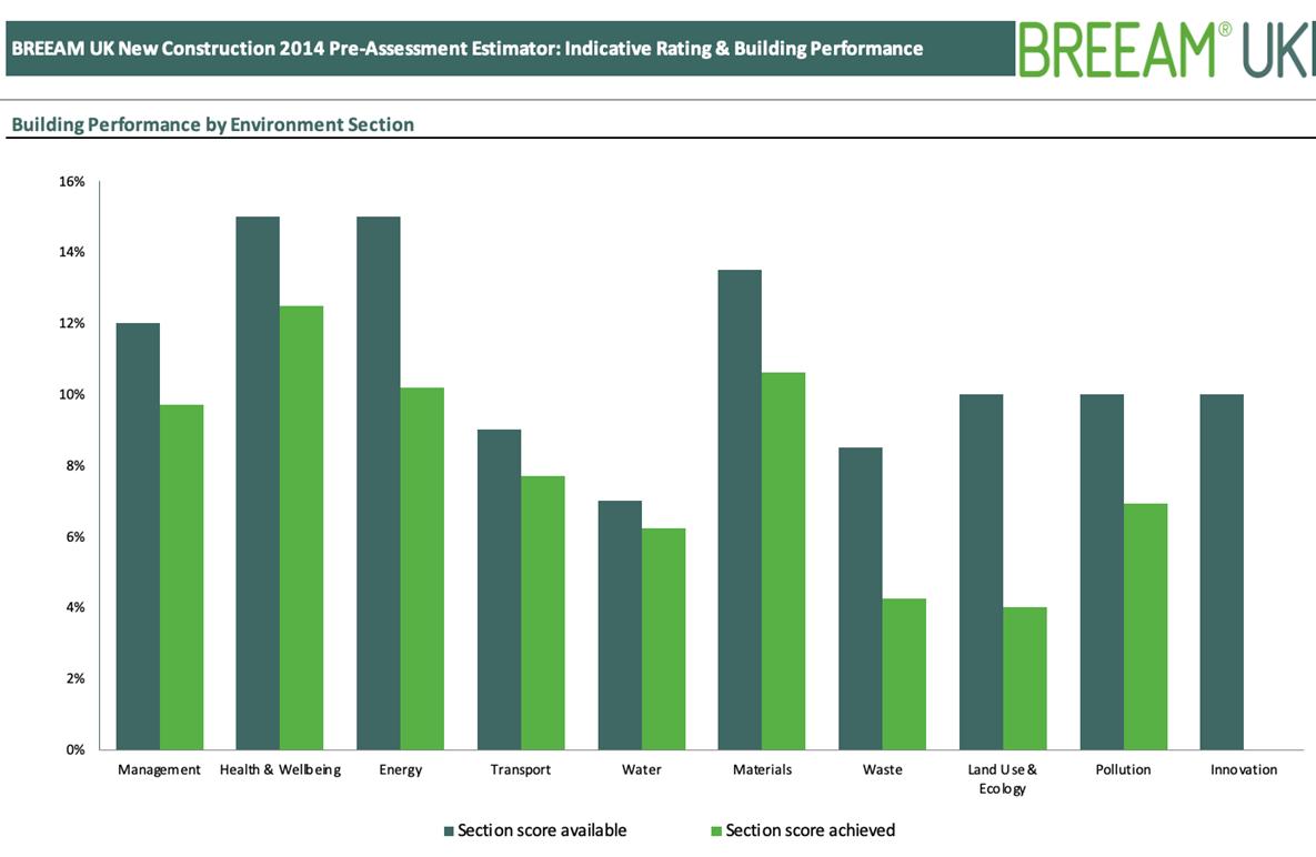 A 70% is required to achieve BREEAM Excellent. We achieved 72.1% using especially conservative estimates in the areas of energy, water, land use and ecology, with no innovation points.