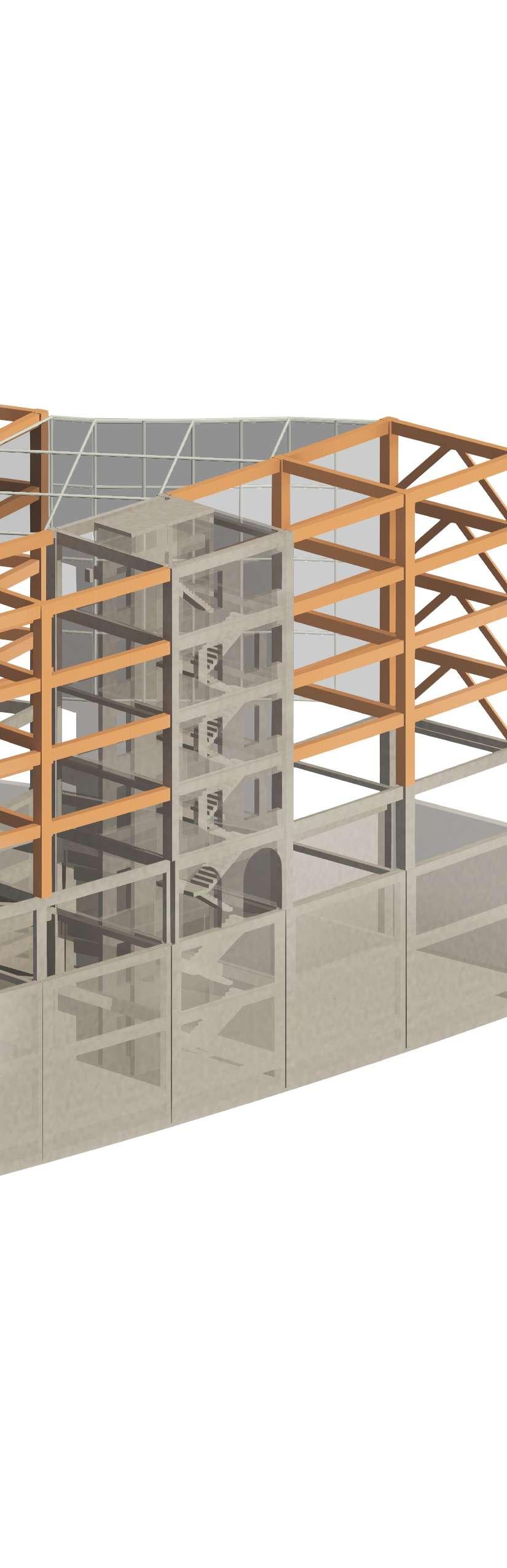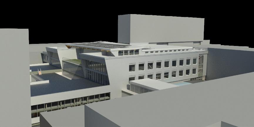 and finish aluminium cladding will be hung on the new structure. The structural integration ensure that the building can incorporate the additional loads due to the self-weight of the modular system, wind loads and the combination of both.