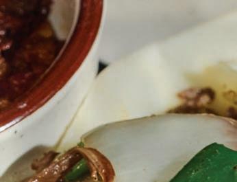 Husband and wife duo Sarah Nelson and Louis Guerrieri spent years cutting their teeth in the Denver food scene before moving to Kansas City. Both have years of expertise behind them: Louis’ background is in sushi and butchery while Sarah specializes in pastry. When they moved back to Kansas City, both worked at the Golden Ox, and Louis helped open Fox and Pearl. The couple is now running Ombra (4161 N. Mulberry Dr., KCMO), which opened late last year in The Village at Briarcliff. It focuses on globally in uenced small plates and tapas.